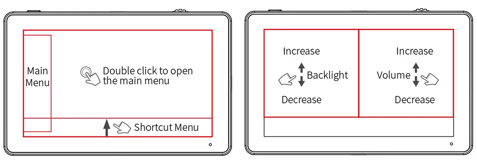 3. No lado esquerdo da tela (1/2 tela dividida), você pode ajustar diretamente o brilho da luz de fundo da tela; no lado direito da tela (1/2 tela dividida), você pode ajustar diretamente o volume.