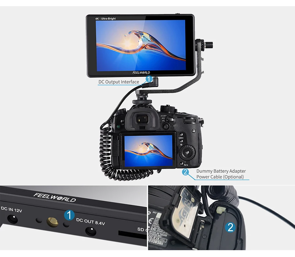 O LUT6 é um monitor de câmera ideal para câmeras DSLR e mirrorless. Porque o LUT6 fornece energia auxiliar; permitindo que os atiradores alimentem suas câmeras. Com um cabo adaptador de bateria (opcional), o LUT6 amplia o tempo de execução da câmera, proporcionando uma exibição mais utilizável.