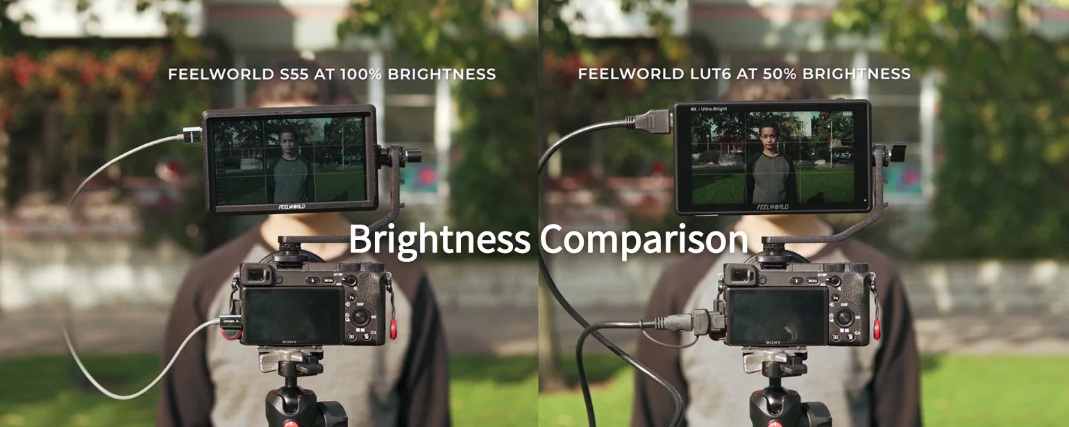 A tela de 2600nits totalmente ajustável é incrivelmente brilhante, tornando-a perfeita para fotografar em ambientes fechados ou externos. A tela brilhante de 2600nits tem quase 5 vezes o brilho dos monitores de campo convencionais, permite fotografar ao ar livre sem reflexos lavando sua imagem. Isso facilita a visualização ao ar livre sem capuz, facilitando a filmagem ao ar livre em plena luz do dia!